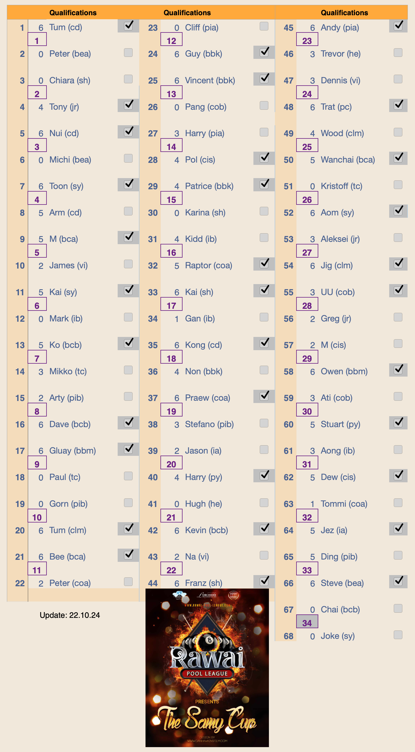 Below you see the list of the 16 players who will compete in the 1/8 finals. This round will be best of 5.
